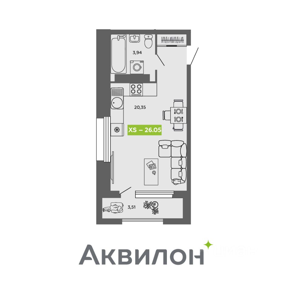 Общая площадь26,05 м²
