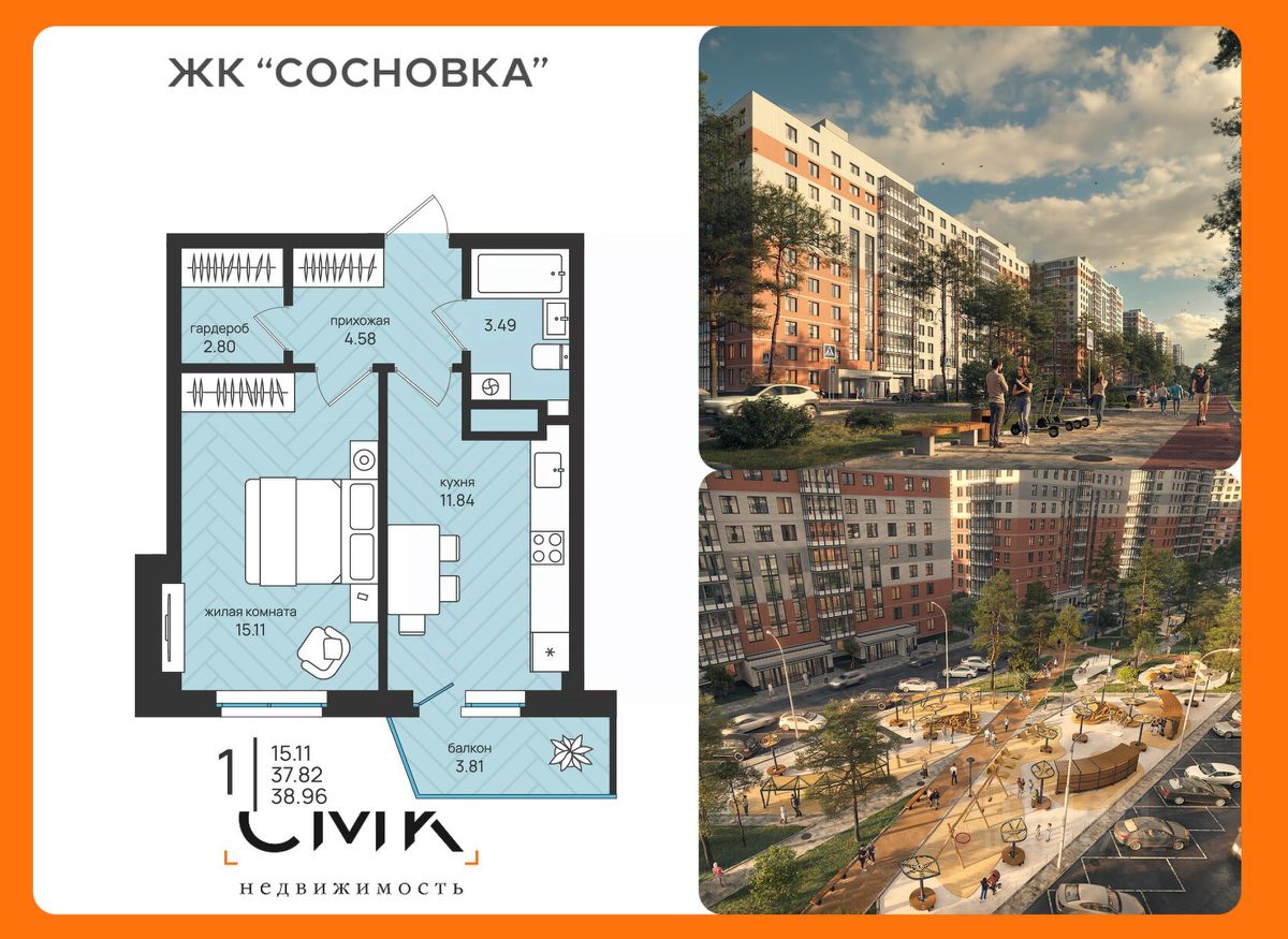 Общая площадь38,96 м²