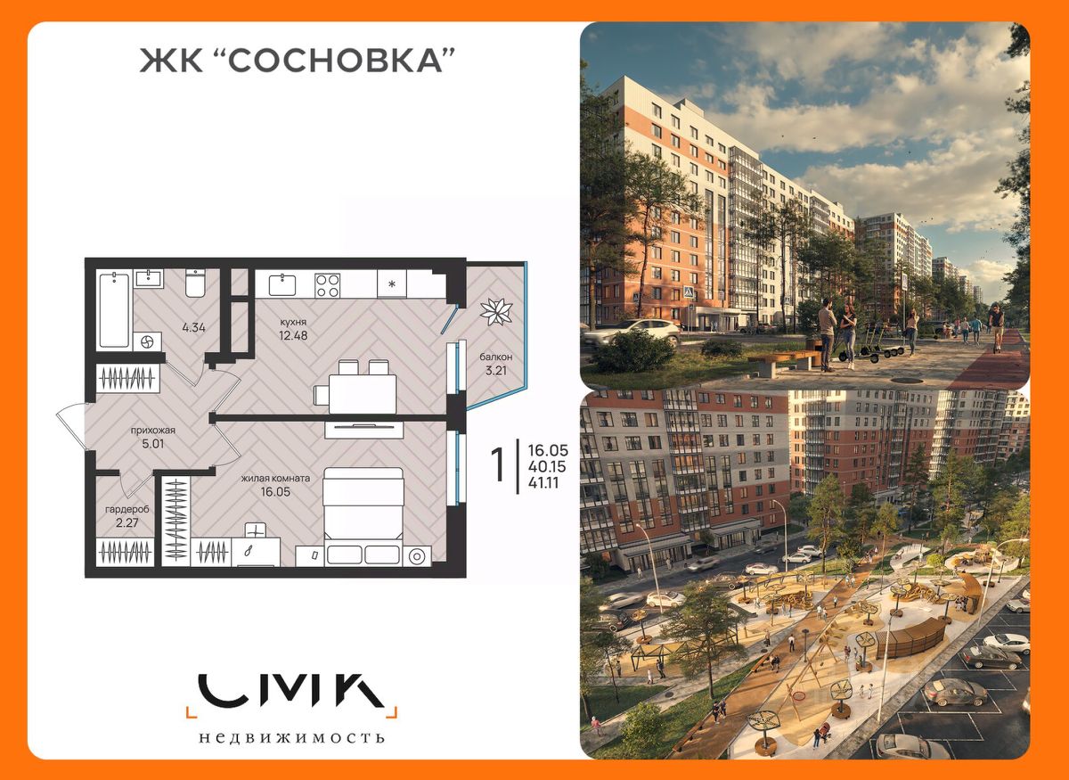 Общая площадь41,11 м²