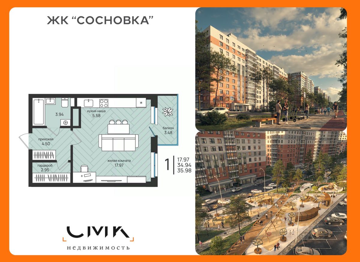 Общая площадь35,98 м²