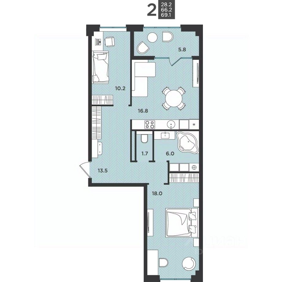69,1 м²