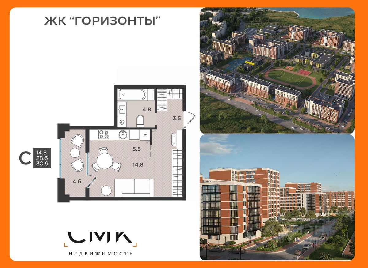 14,8 м²