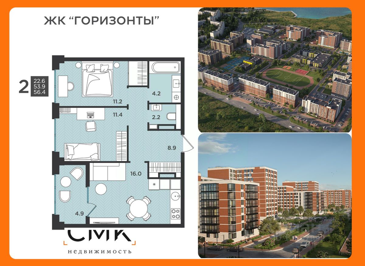 56,4 м²