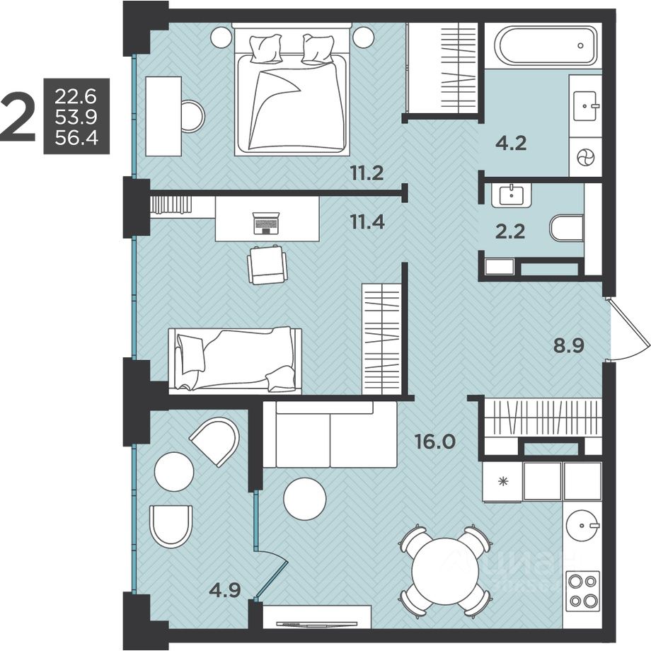 56,4 м²