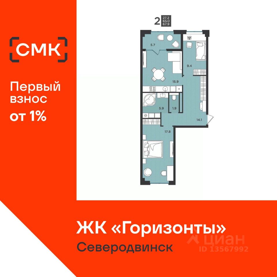 67,9 м²