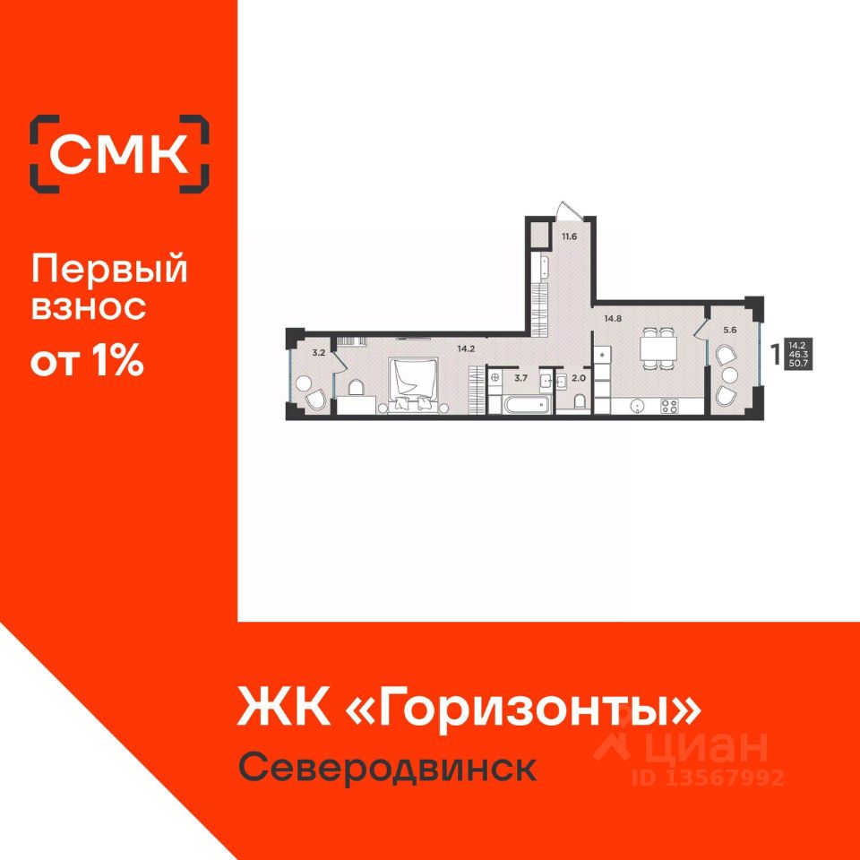 14,2 м²