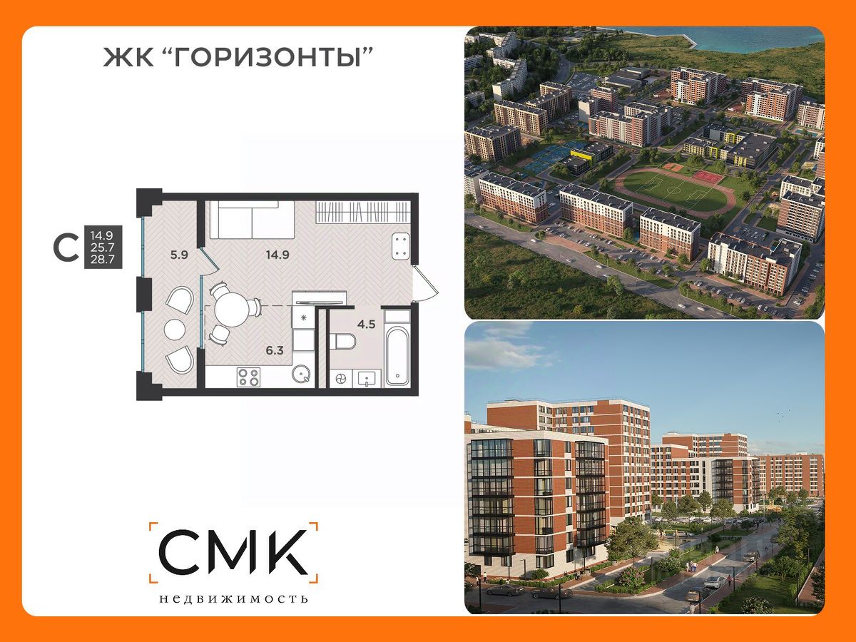 14,9 м²