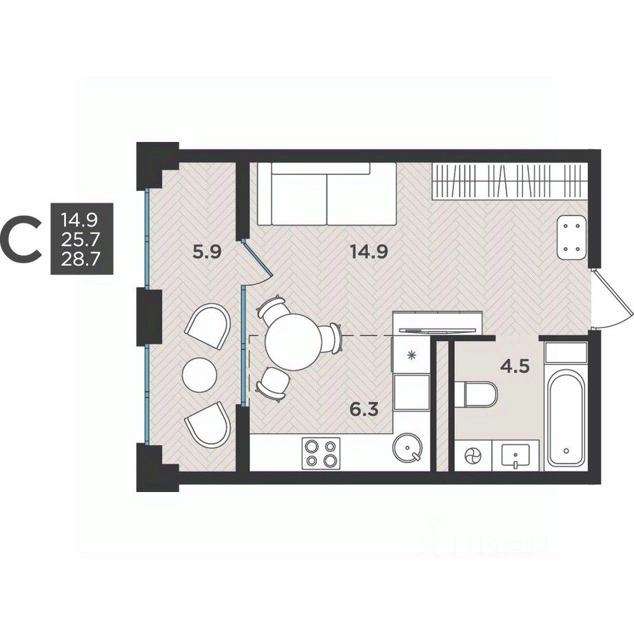 28,7 м²