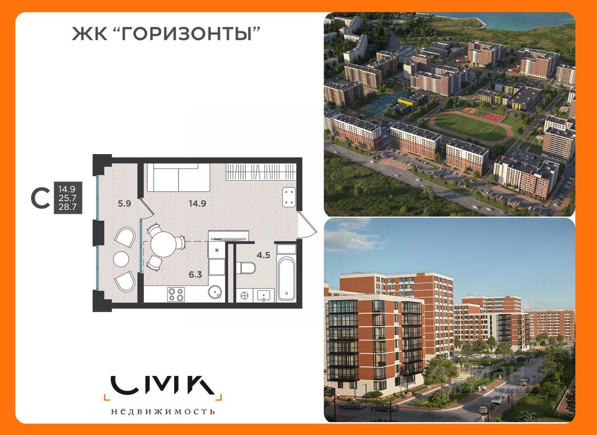 14,9 м²