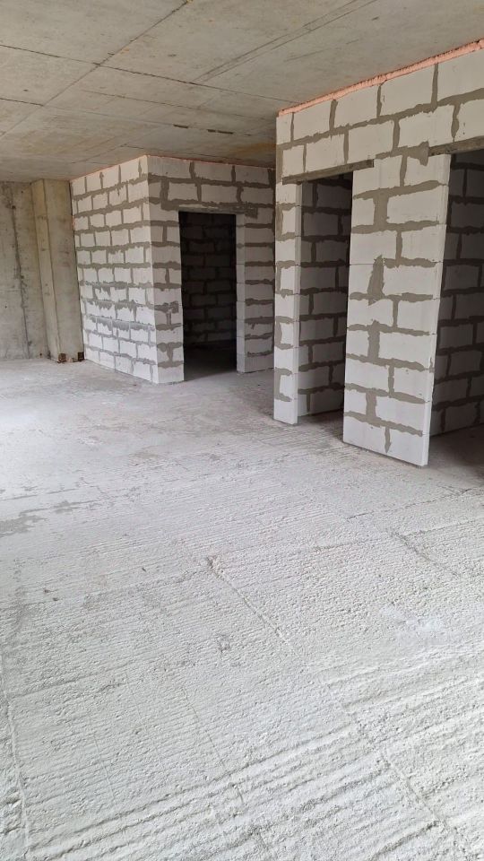 В квартирах высокие потолки от 2,8 до 3 метров. Все балконы застеклены. Будут выполнены самые грязные и тяжелые работы: заливка полусухой стяжки вместе со слоем керамзита для тепло- и звукоизоляции, установка межкомнатных стен.