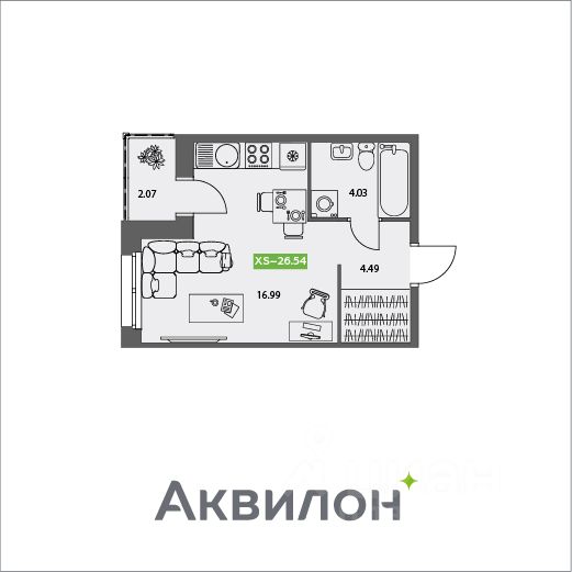 Общая площадь26,54 м²
