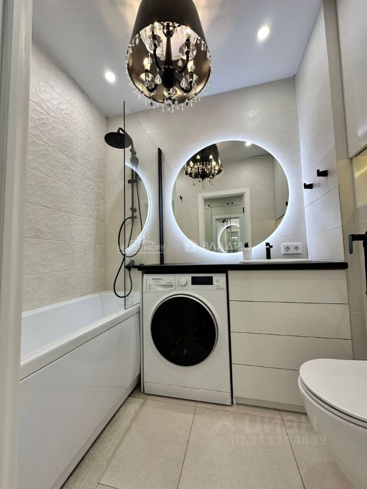 Ванная комната: стиральная машина со встроенным сушильным шкафом.