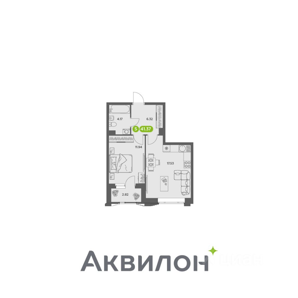 Общая площадь41,37 м²