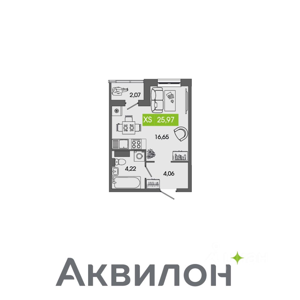 Общая площадь25,97 м²