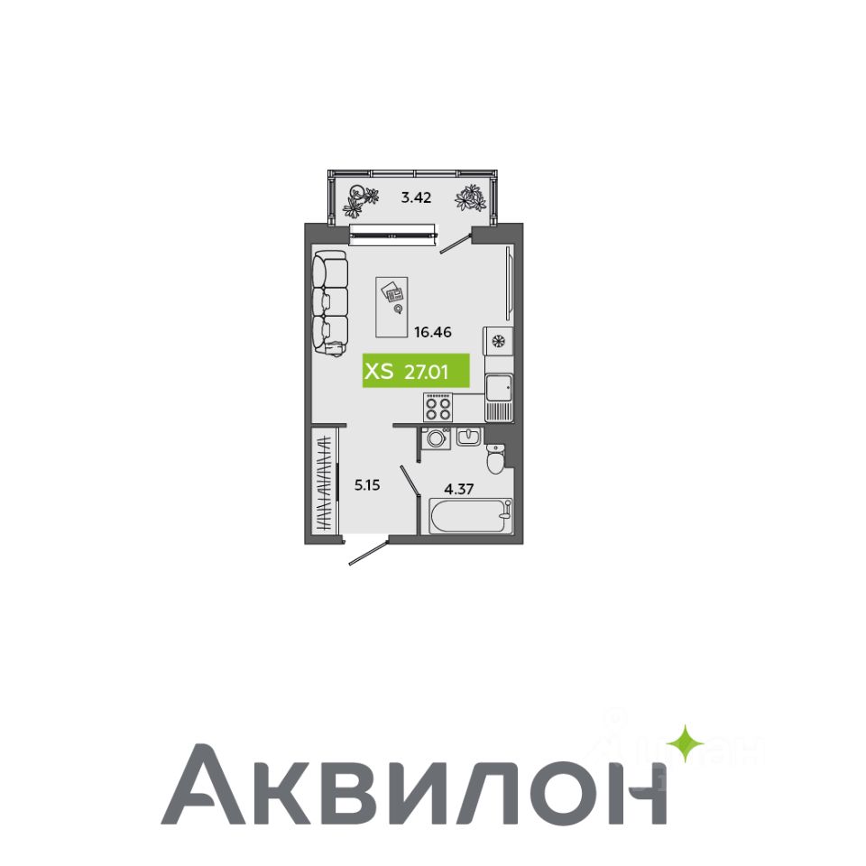 Общая площадь27,01 м²