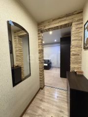 В квартире сделан евроремонт, изолированные комнаты, кухня, совмещенный санузел, установлены натяжные потолки, пластиковые окна выходят на улицу, видно Северную Двину и парк Майский. Установлены газо-, электросчетчики и счетчики на воду.