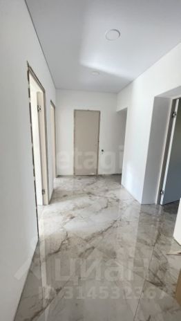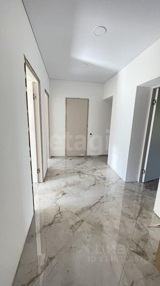 В комнатах на полу установлен ламинат, окна ПВХ с каменным подоконником. Натяжные потолки куплены, нужно установить с учетом света (точечный, лента или люстра, все по желанию покупателя).