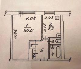 Общая площадь квартиры — 36,7 кв.м., жилая — 20 кв.м. Площадь кухни — 7,7 кв.м.