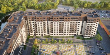ЖК рядом с ТЦ "Макси". За домом пруд с благоустроенной набережной.