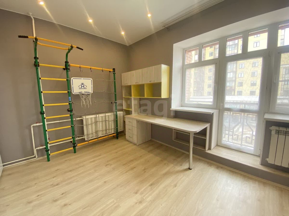 Большие окна, выходящие на юго-восток, где нет высокоэтажных зданий, позволяют весь день освещать квартиру солнечным светом. Вся квартира сделана в приятных светлых тонах, здесь много света, уюта и тепла!