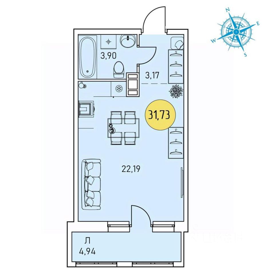 31,73 м²