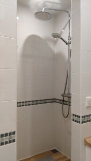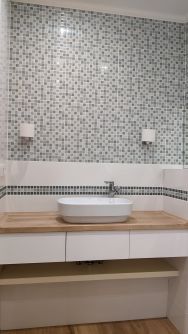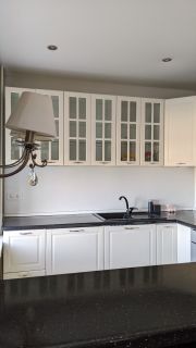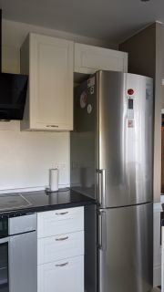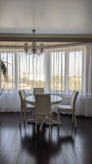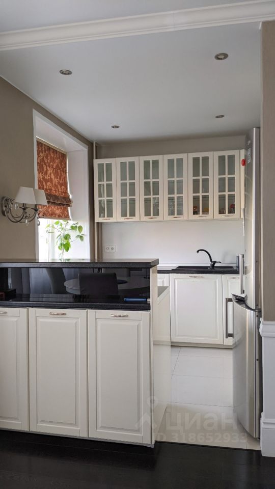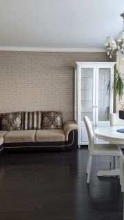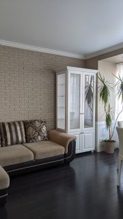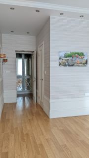 В квартире выполнен дизайнерский ремонт с перепланировкой. Кухня-гостиная 26 кв.м с двумя окнами. В зоне кухни на полу кафель с подогревом, в обеденной зоне ламинат. Потолок натяжной. Во встроенной кухне шкафчики с подсветкой. Плита электрическая! Межкомнатные двери в едином стиле. В прихожей пол кафельный с подогревом. В спальне есть вместительная гардеробная. Санузел совмещен, есть шкаф для хранения, удобная душевая. Лоджия с видом на кольцо, застеклена пластиком, утеплена.
