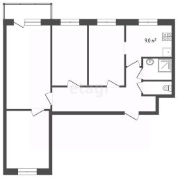 На продаже четырехкомнатная квартира площадью 77 кв. м, расположена на пятом этаже девятиэтажного панельного дома с лифтом и мусоропроводом.
