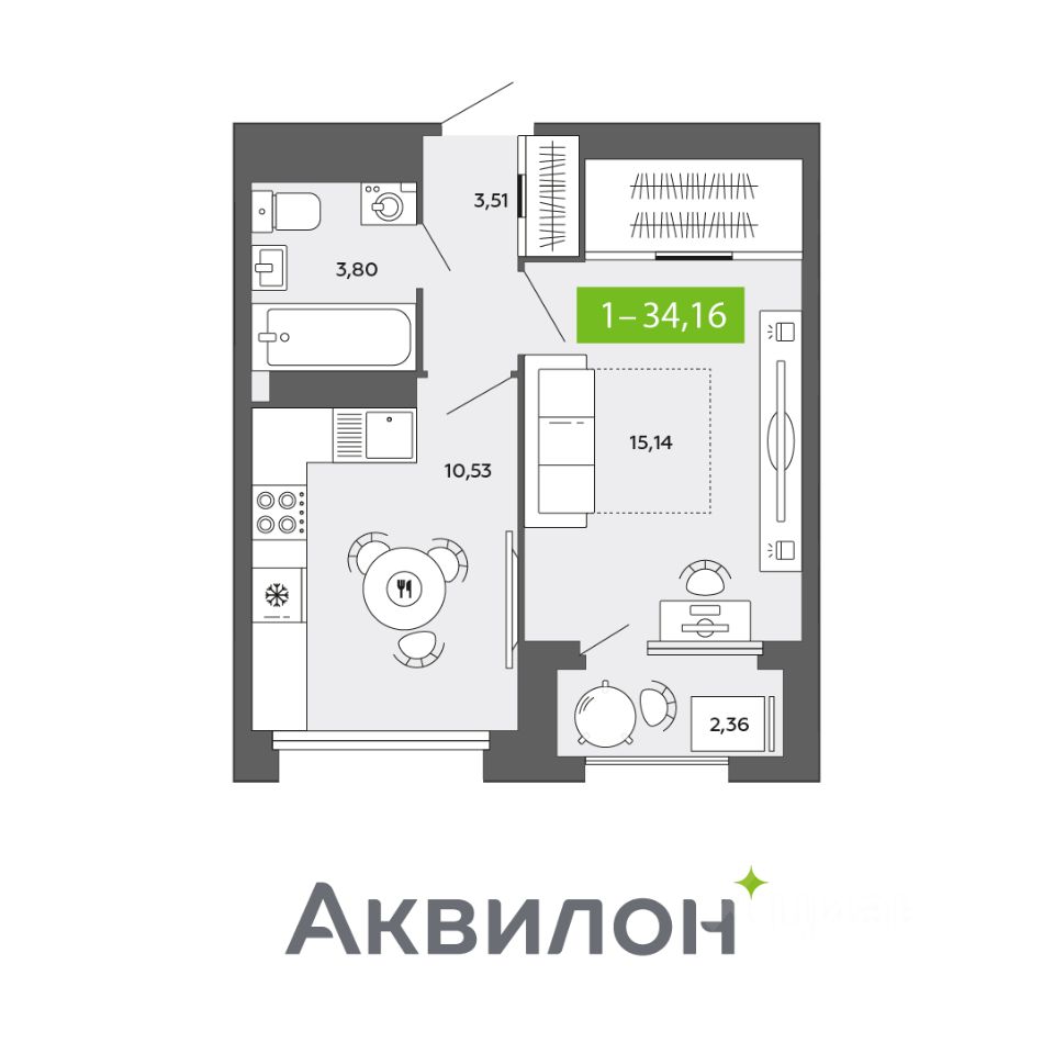 Общая площадь34,16 м²