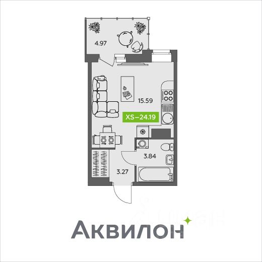 Общая площадь24,19 м²