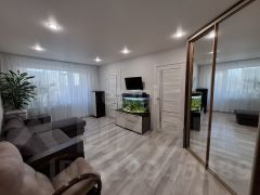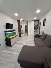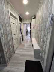 Квартира отличается продуманной и узаконенной перепланировкой, которая создает максимальный комфорт для проживания. Просторная кухня площадью 7,7 кв. м настоящая находка для любой хозяйки! Современная отделка, выполненная из качественных материалов, и новая сантехника делают это пространство не только функциональным, но и стильным. Рабочая поверхность кухни расположена у окна, что позволит вам готовить с удовольствием, наслаждаясь видом на улицу.