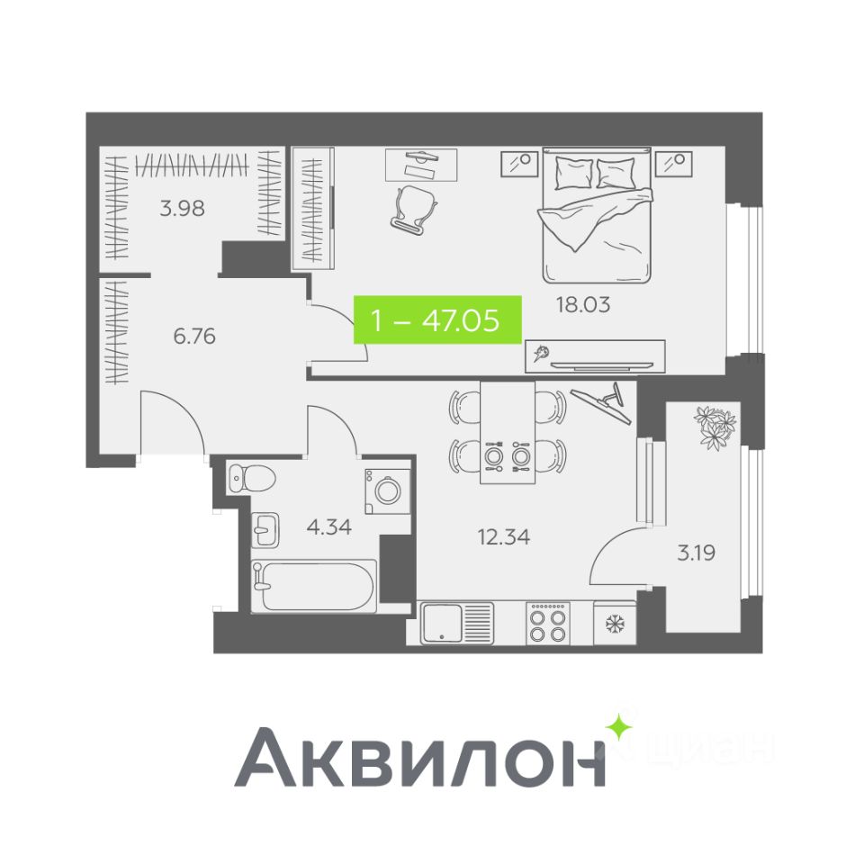 Общая площадь47,05 м²