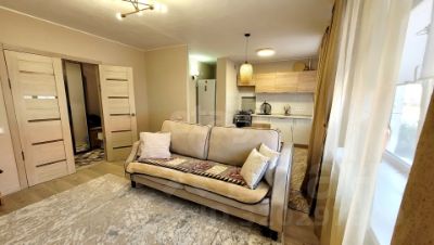 Квартира расположена на 1 этаже пятиэтажного дома. Была сделана и узаконена перепланировка - теперь есть просторная кухня-гостиная 23,8 кв.м. и спальня с застеклённой лоджией. Окна выходят на обе стороны дома в квартире всегда светло и не душно.