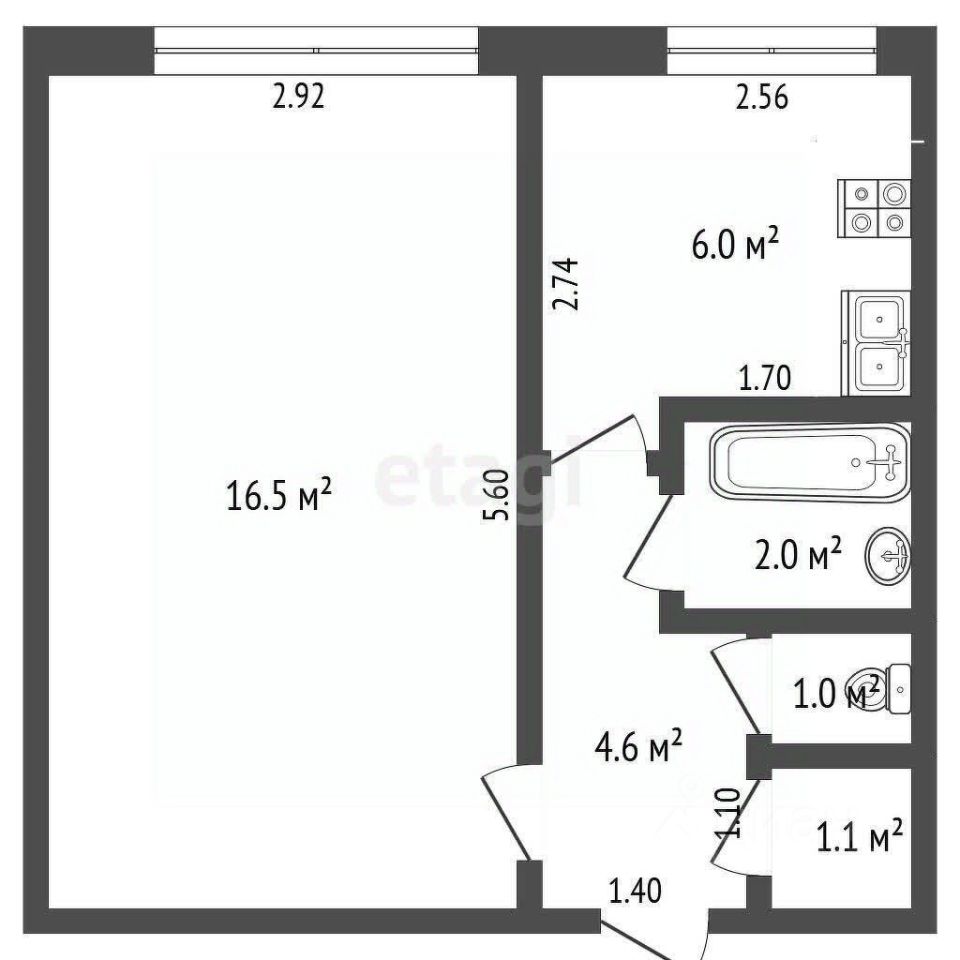 Продаём однокомнатную квартиру в кирпичном доме на пятом этаже, общей площадью 30 кв.м.