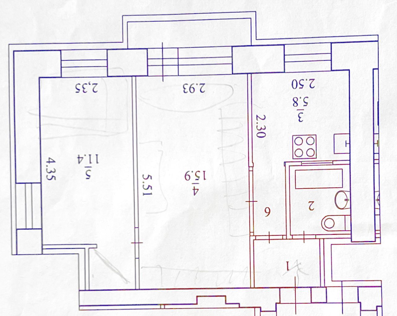 - квартира поддаётся перепланировке в двухкомнатную с раздельными комнатами или в евродвушку