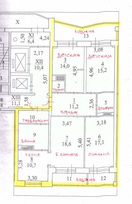 Квартира общей площадью 105 кв.м (без лоджий). В квартире 2 детские комнаты 14м2 и 15.2м2, спальня 17.1м2, гостиная 18.6м2, кухня 10.7м2, 3 санузла, гардеробная, коридор и 2 большие лоджии. По всей квартире сделан качественный ремонт из хороших материалов.