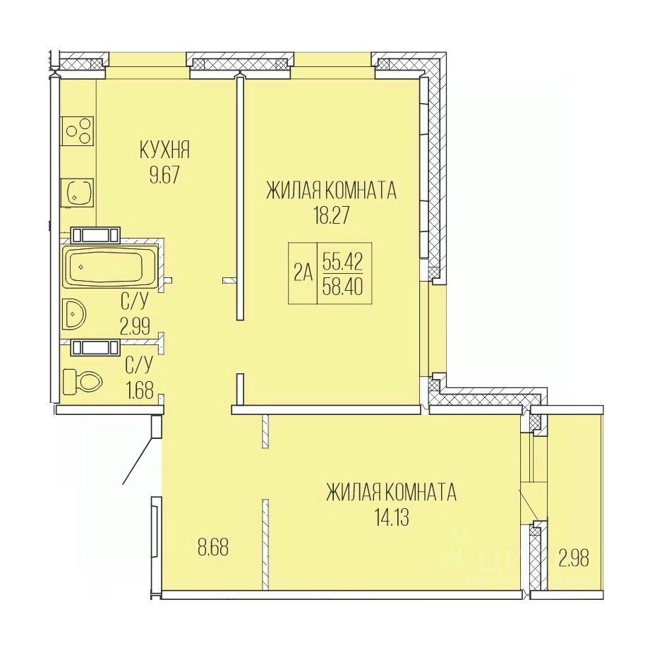 Общая площадь58,4 м²