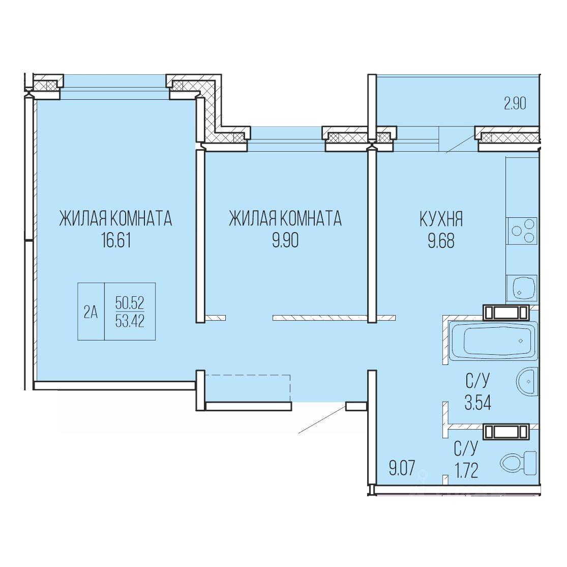 Общая площадь53,42 м²