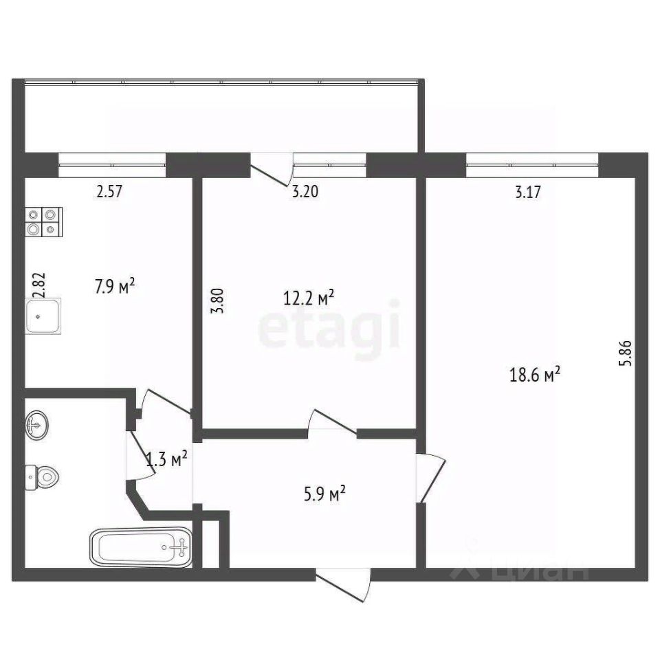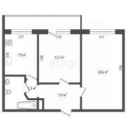 Двухкомнатная квартира площадью 49,9 кв.м. расположена в доме 93 серии. Планировка продумана для комфортного проживания: раздельные комнаты 18,6 и 12,2 кв.м. с высотой потолков 2,86 м обеспечивают достаточное личное пространство, а совмещенный санузел с размещенной стиральной машиной повышает удобство эксплуатации.