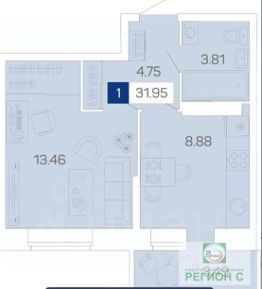 Лоджия1,13 кв м (застекленная, с панорамным остеклением) *комната правильной формы