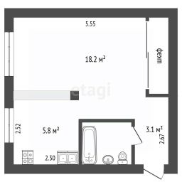 В квартире косметический ремонт, жилая площадь - 18,2 кв.м., кухня - 5,8 кв.м., совмещенный санузел, окна выходят во двор и именно с 5 этажа открывается красивый вид на территорию Пивзавода, а вечерами можно любоваться красивыми северными закатами. Установлены счетчики на воду.