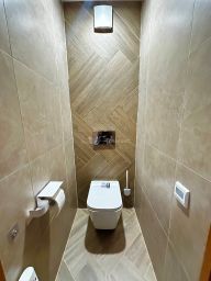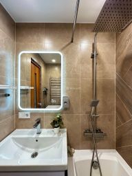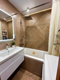-Раздельный сан. узел в кафеле "под ключ", заменены коммуникации, теплый пол, свежая сантехника, установлена система от протечек; медная проводка.