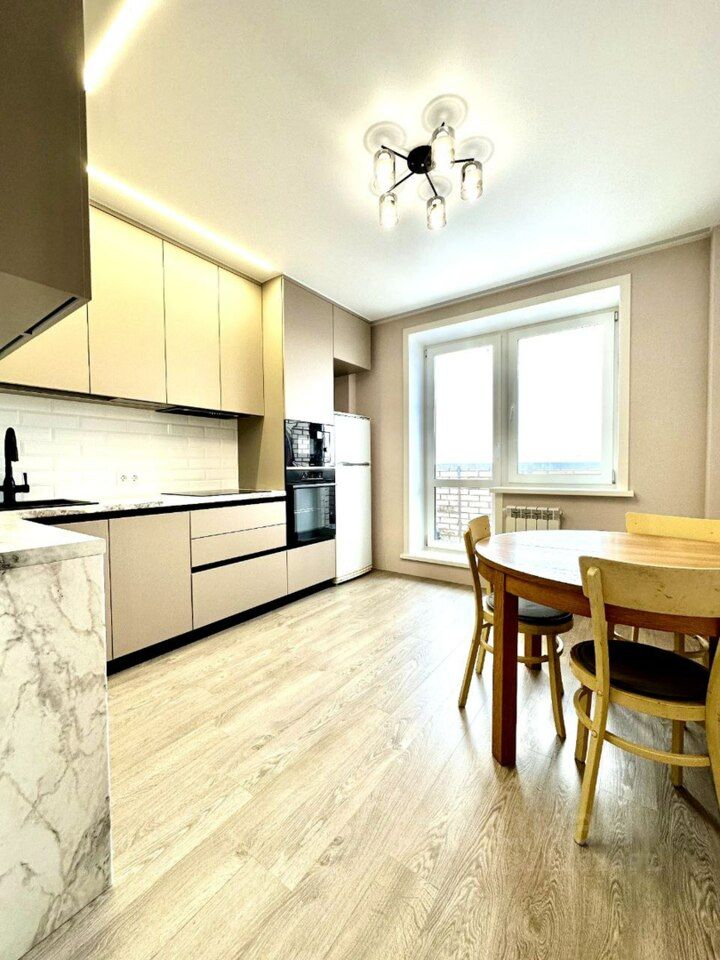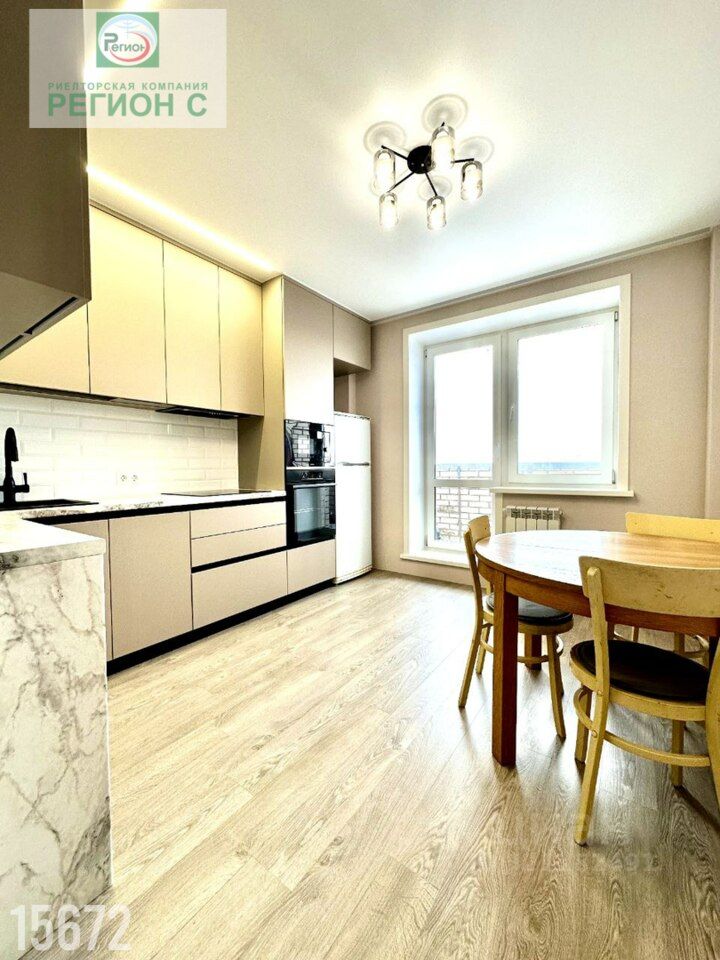 Общая площадь составляет 73,6 кв.м., Имеется просторная кухня с выходом на балкон.
