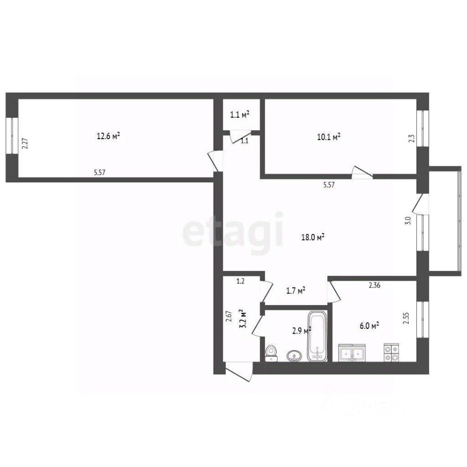 55,6 м²