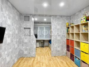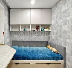 - Остается полностью вся мебель: кухонная, встроенная детская , гардеробный шкаф в прихожей , диваны и кровать. В спальне за жалюзи предусмотрена вместительная гардеробная.
