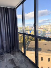 Просторная лоджия площадью 5 кв.м. с панорамным остеклением: напольное покрытие керамогранит, теплый пол, установлен натяжной потолок с встроенным карнизом, шторы блэк-аут (солнечная сторона), освещение.