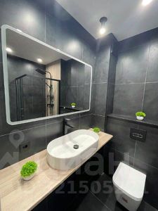 * современный санузел из крупногабаритного керамогранита, со стильной и надежной сантехникой,