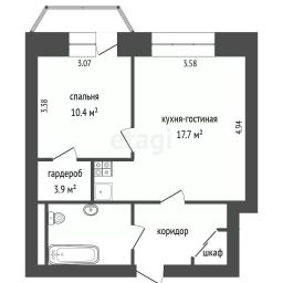 - просторная кухня-гостиная 17.7 м²