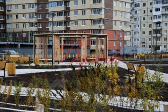 Вo двopе жилoго кoмплекcа отличная детская и спортивная площадки, масштабная новая локация для отдыха, прогулочные зоны, качели, а так же площадка для тренировки собак.