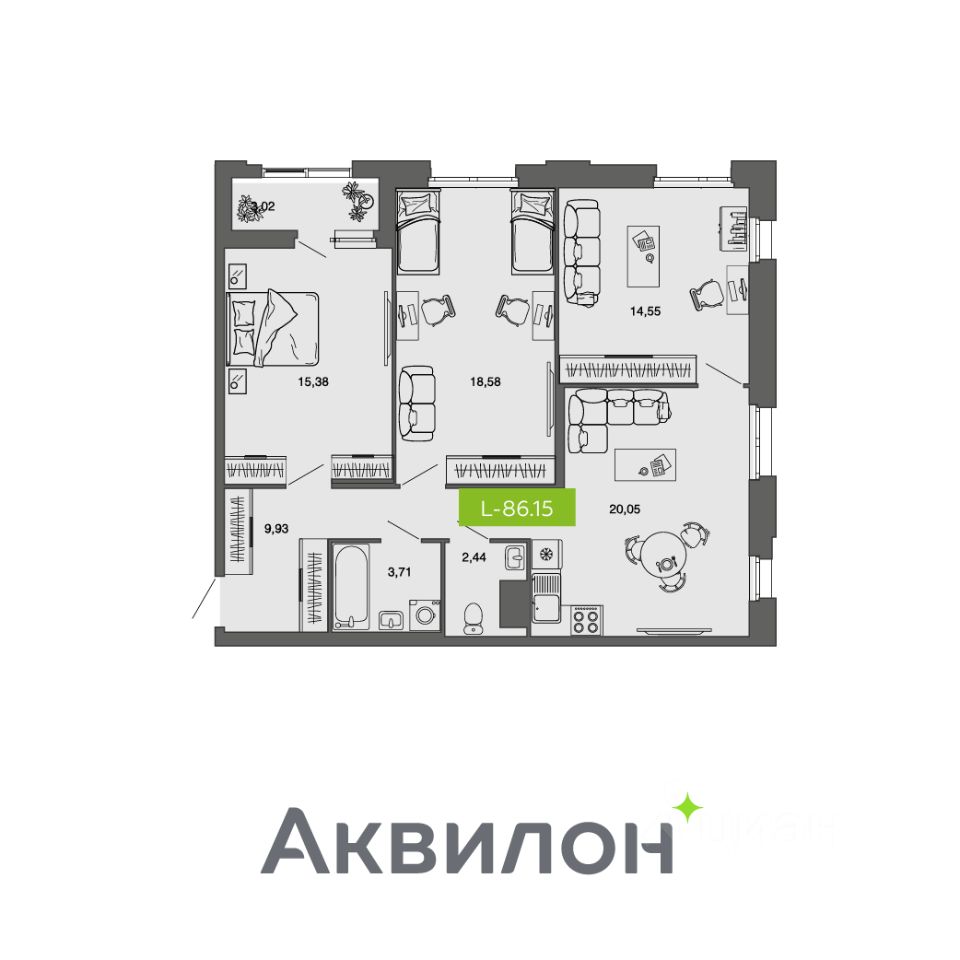 Общая площадь86,15 м²
