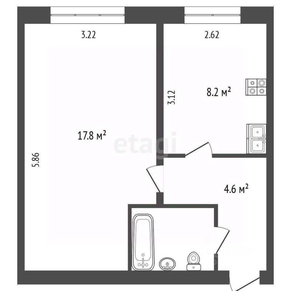 Комната: 17,8м2